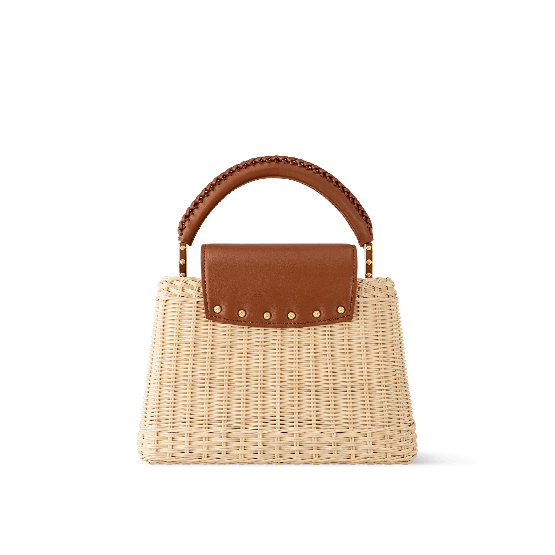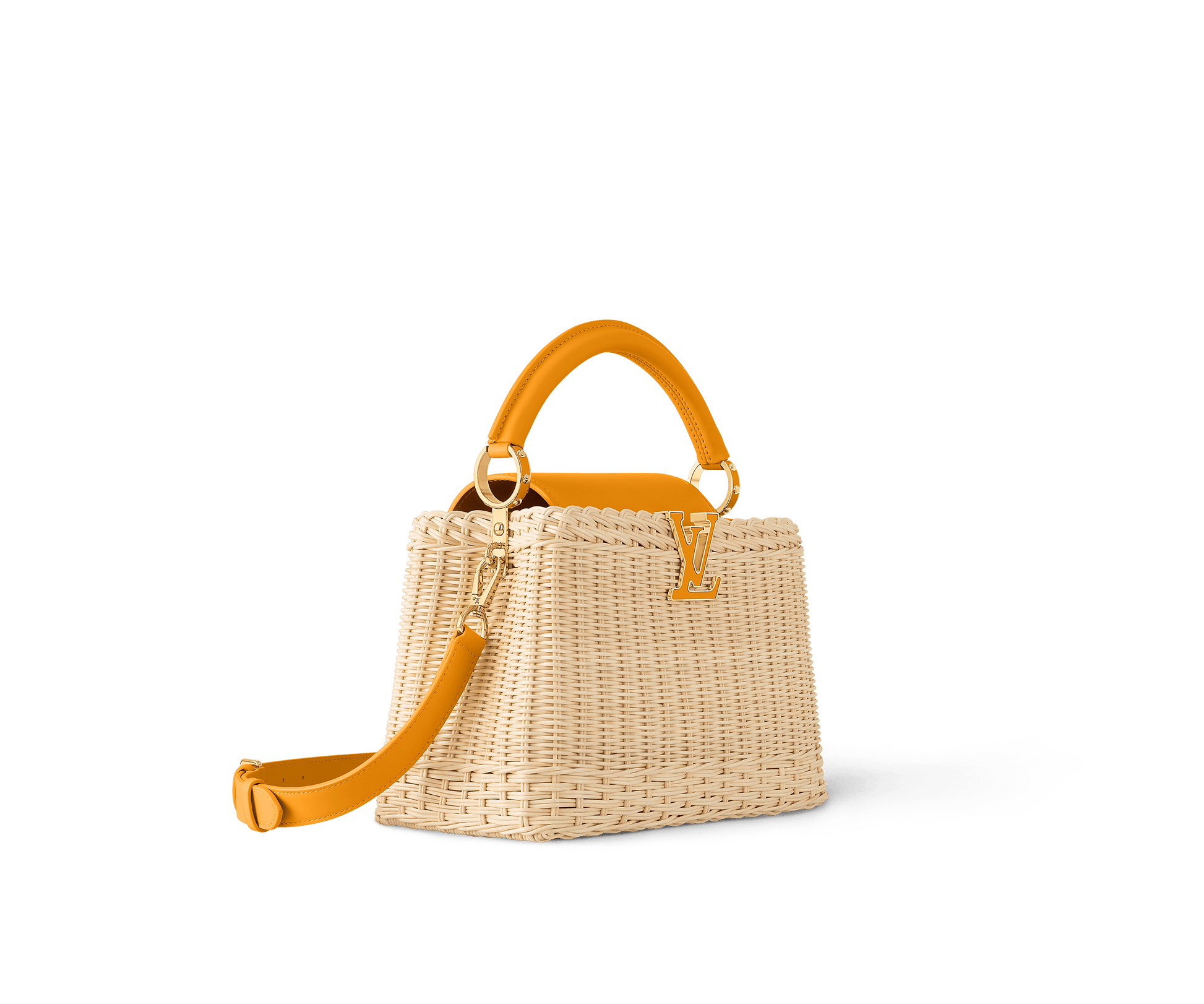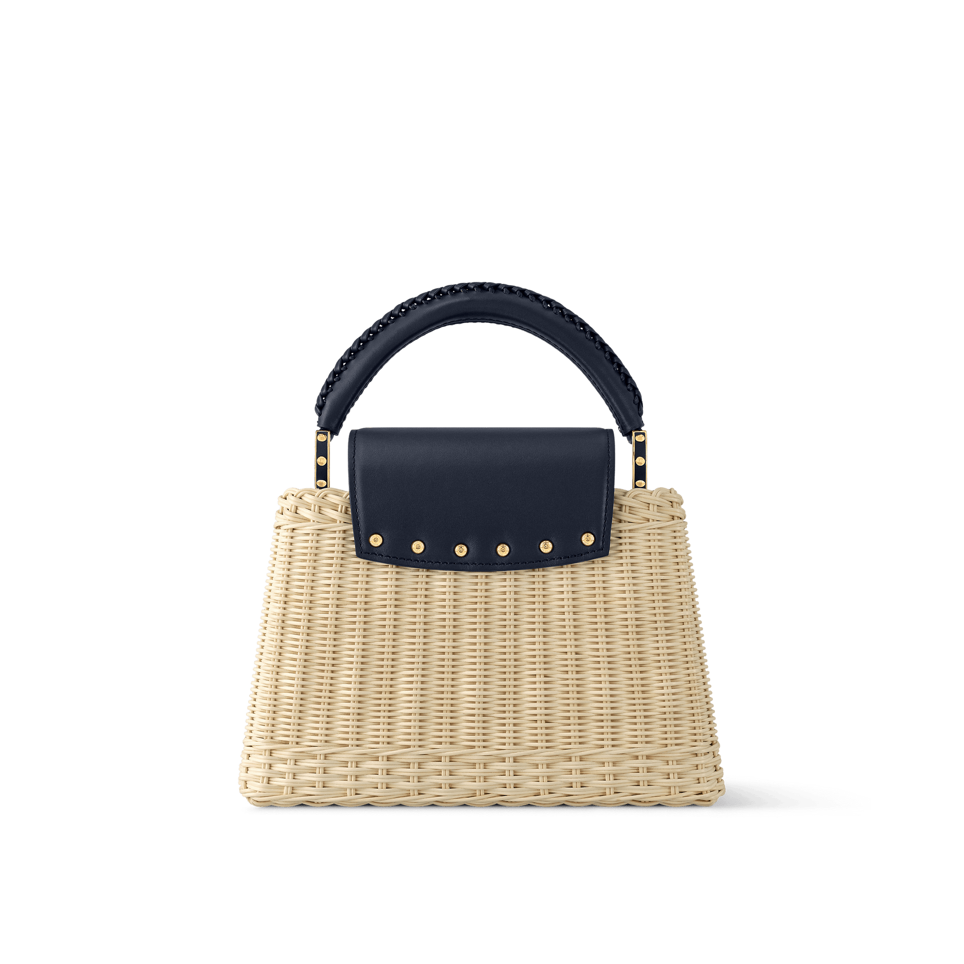 This Capucines BB is meticulously handwoven from rattan, with each one-of-a-kind design taking two days to complete. Lending a resort-inspired aesthetic, it is evocative of the House’s Picnic Trunk from 1892 and opens to reveal a patterned lining. It can be worn with the flap styled inside or out, and is sized to fit everyday essentials. The signature LV Initials add the final flourish.