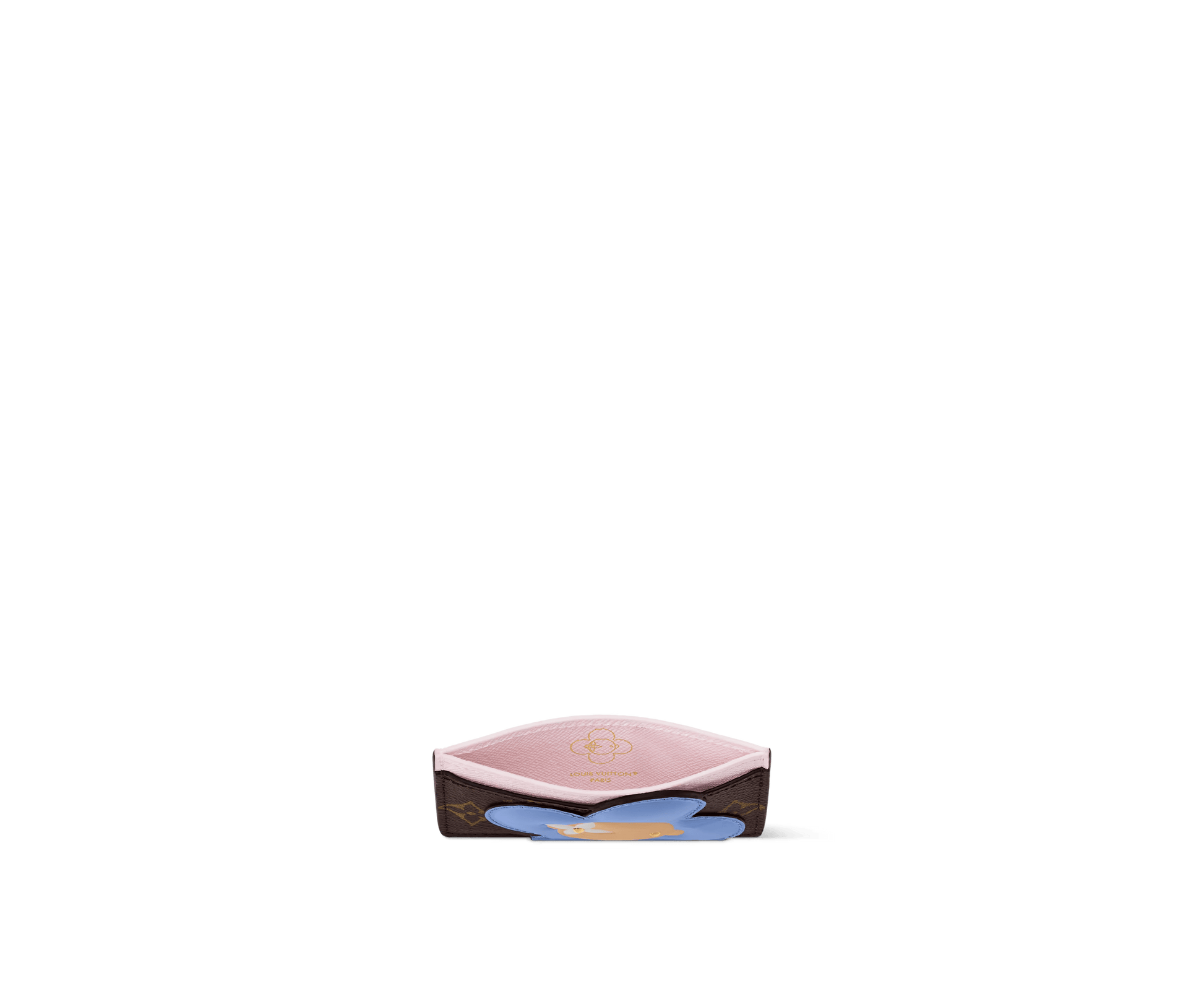 This Vivienne card holder makes a charming gift idea for fans of the House’s iconic mascot. It is made from signature Monogram canvas, trimmed with Snowy Pearl leather across the top and a Blue Frost iteration of the playful character. Inside, there is a large slot for cards and receipts, with two further card slots on the outside of the design.