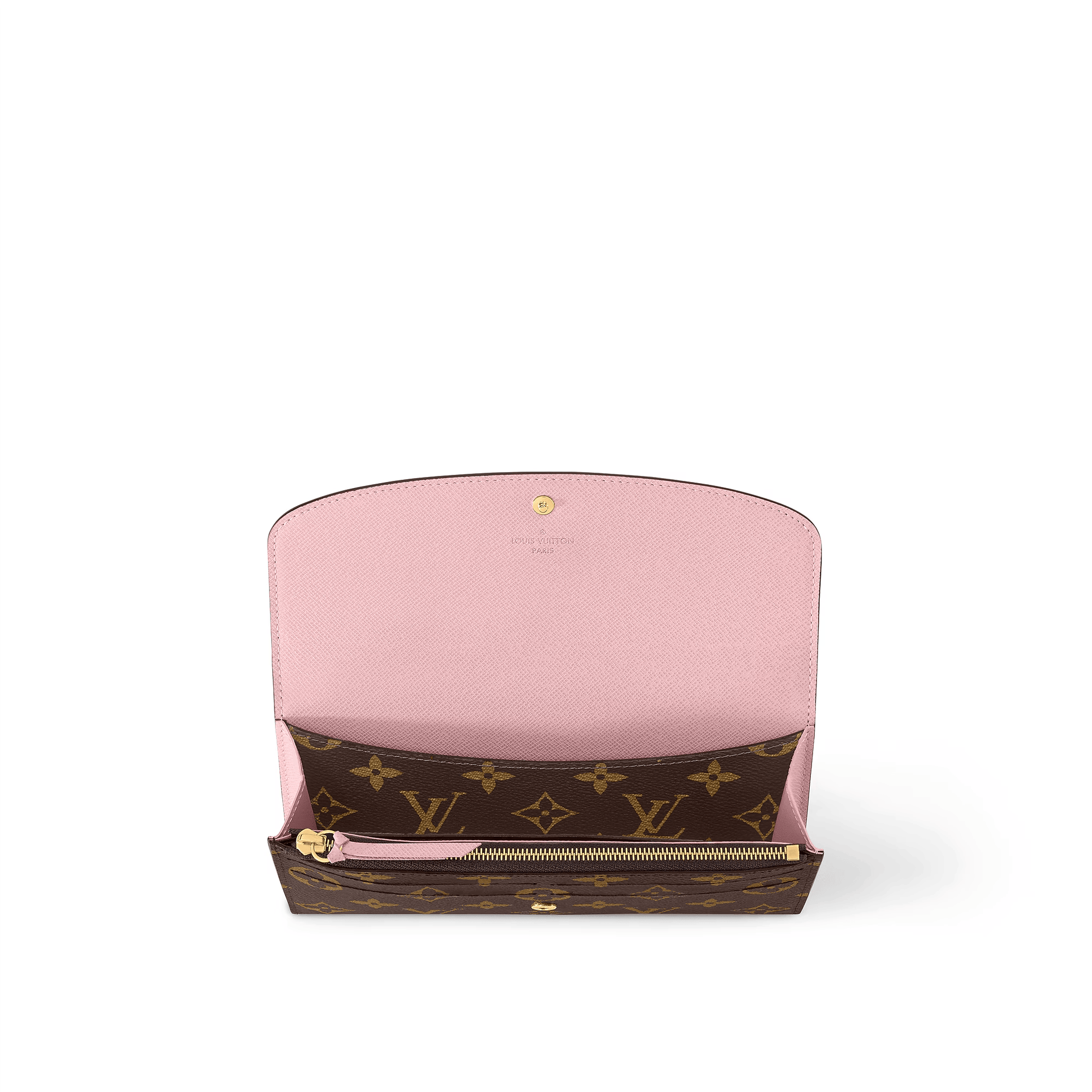 Proving that functionality and beautiful design can go together, the Emilie Wallet is elegance itself in supple Monogram canvas with a fresh lining color. Numerous pockets and an attractive shape make it irresistible.