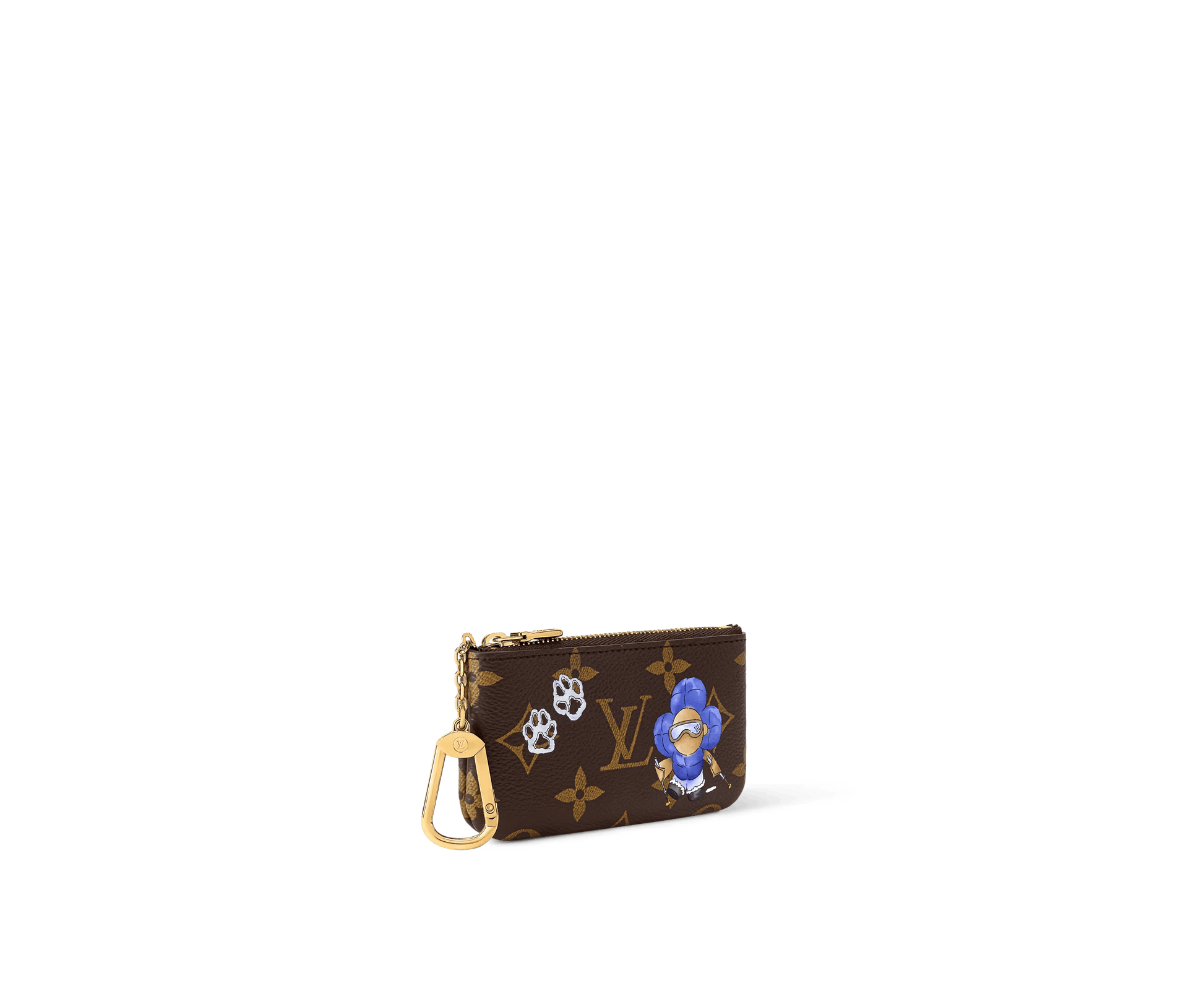 The Vivienne Winter Holiday collection presents this charming edition of the classic Key Pouch. Crafted from signature Monogram canvas, it is decorated with an illustration of the House’s iconic mascot, alongside two paw prints. The compact design is elevated with a gold-toned key hook and opens to reveal a Blue Frost leather lining.