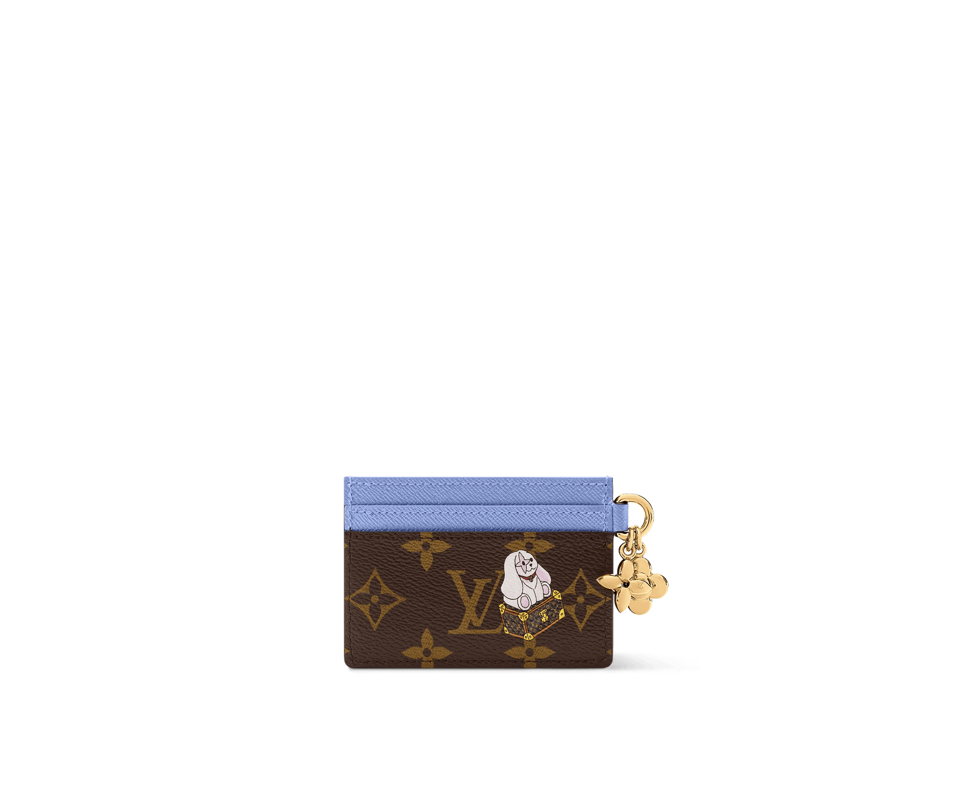 This LV Charms Card Holder is brought to life with the House’s iconic and adorable Vivienne mascot. It is crafted from signature Monogram canvas decorated with playful illustrations and features a contrasting Blue Frost leather trim. Designed with multiple card slots, the charming accessory is finished with a Vivienne-shaped charm and a classic LV Flower.