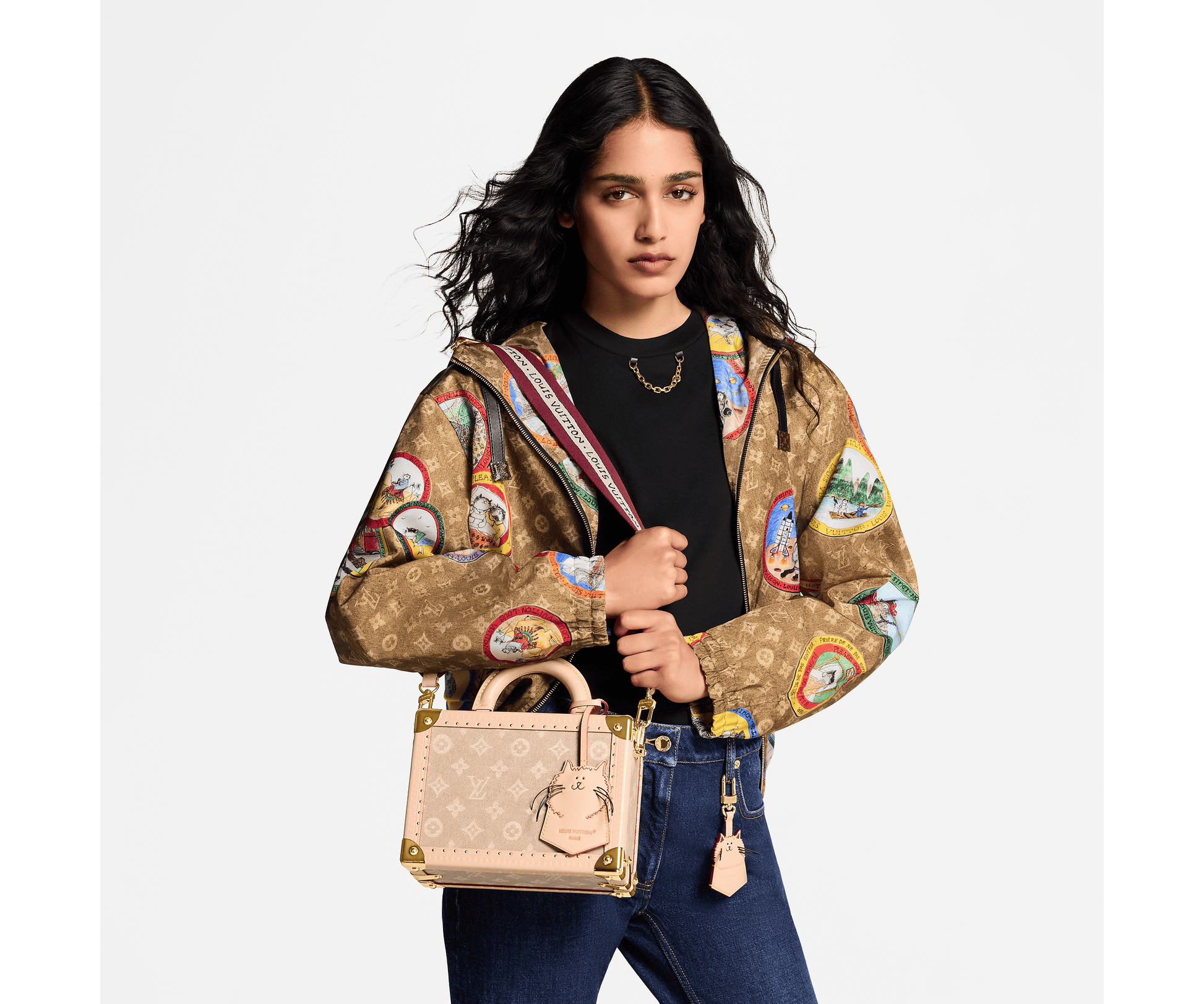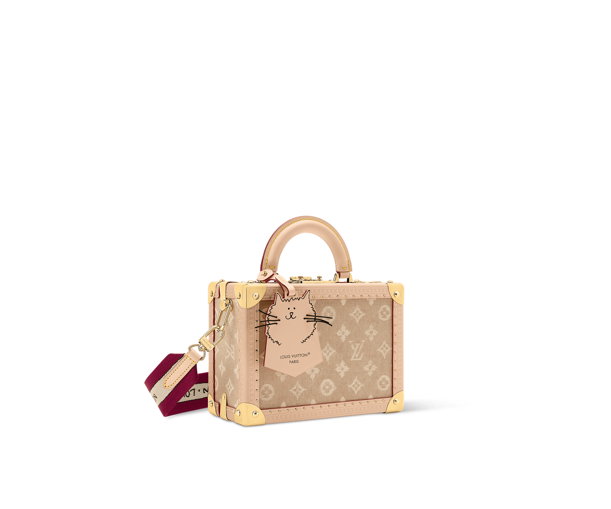 Part of the Travel With collection, created with Grace Coddington, this Petite Valise is crafted from vintage-style Meowgram linen canvas.The petite valise features a cat-shaped charm and an interior Louis Vuitton label with a hand-drawn aspect. The wide removable and adjustable textile strap also showcases a hand-drawn Louis Vuitton signature.