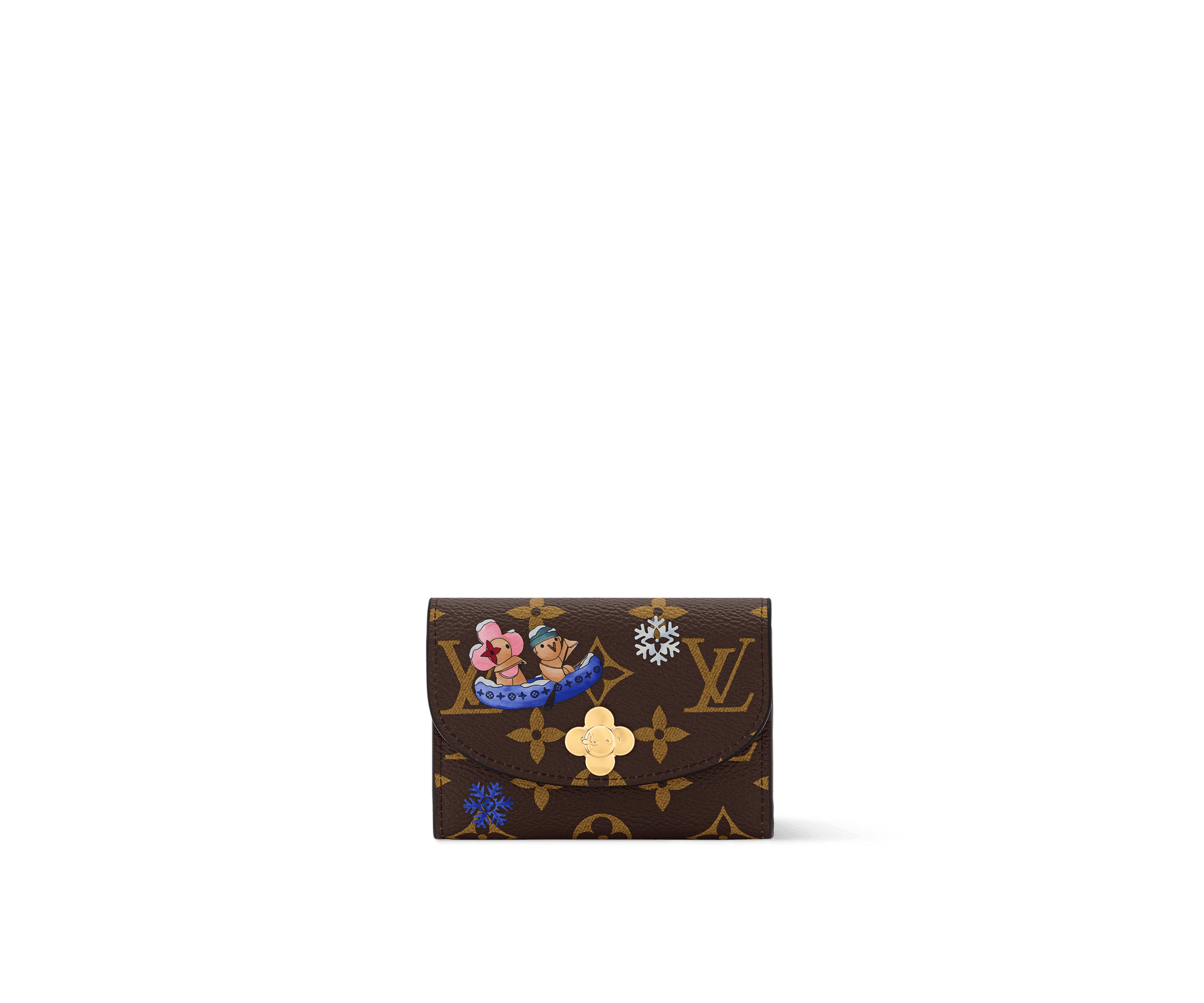 The Rosalie Coin Purse gets a playful update for the season as part of the Vivenne Winter Holiday collection. This version is crafted from signature Monogram canvas and contrasting Blue Frost leather, paying tribute to the House’s savoir-faire. It is adorned with a Vivienne-shaped snap button and is decorated with charming illustrations across the front. There are multiple pockets and compartments inside to keep valuables secure.