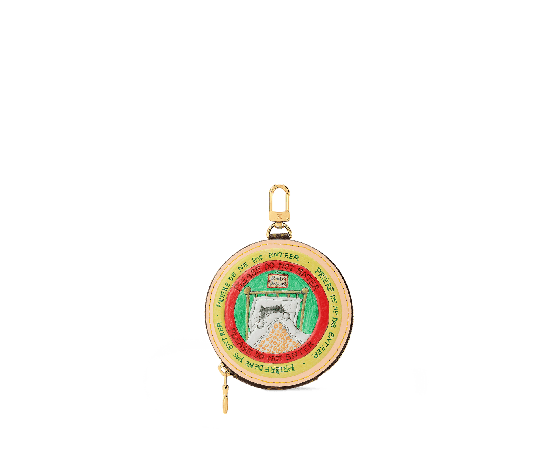 Crafted from cowhide and signature Monogram canvas, this Slippy Coin Purse is part of an exclusive collaboration with legendary fashion icon and artist Grace Coddington. It is defined by a charming and colorful cat motif, which is hand-drawn by Coddington, and displays the playful message ‘Please do not enter’. The round design is finished with a gold-toned zipper and hook, which can be attached to keys or other accessories.