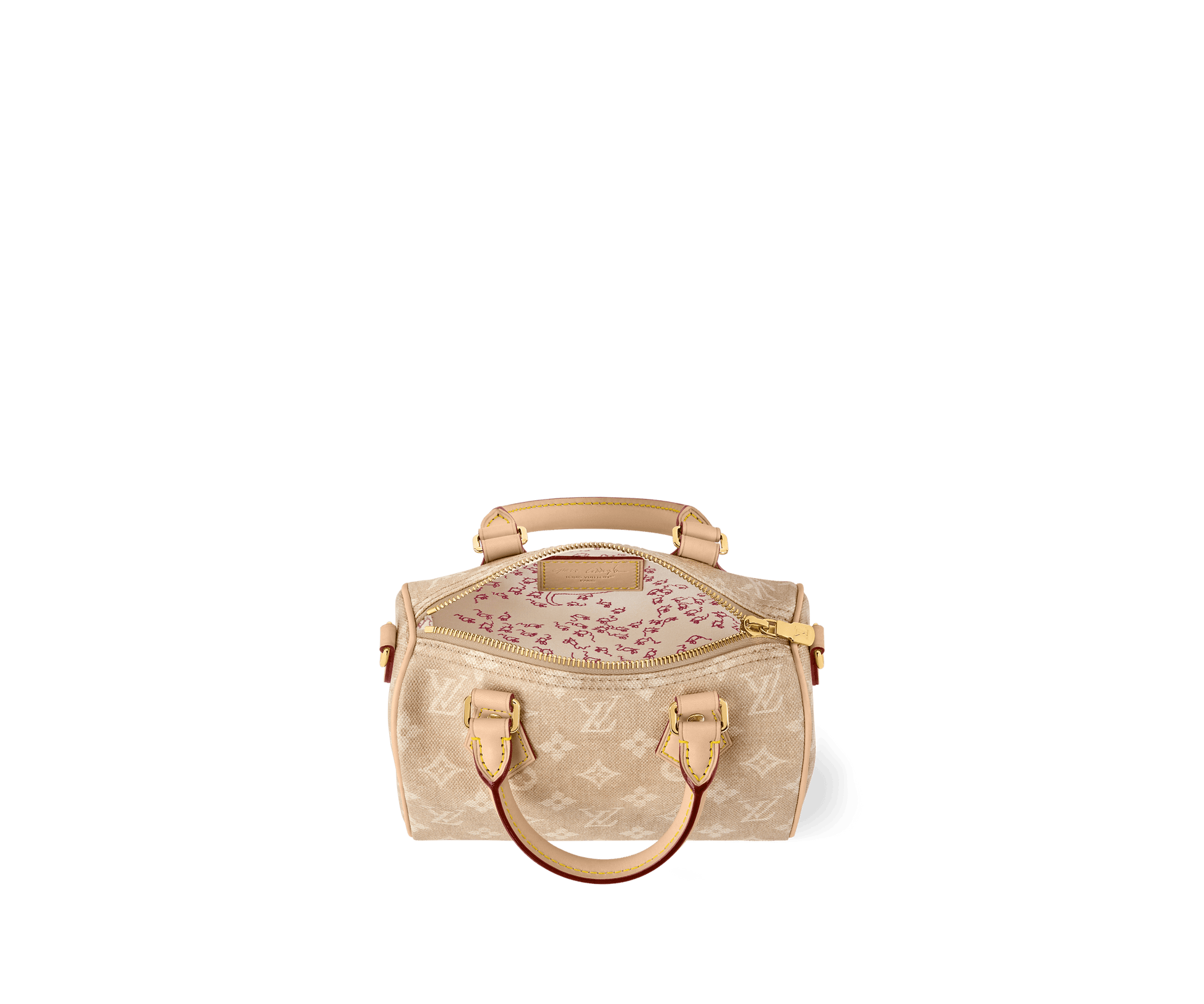 This edition of the iconic Speedy 20 Bandoulière is crafted from Meowgram canvas, designed in collaboration with American Vogue’s former Creative Director at Large, Grace Coddington. Part of her exclusive LV Travels With collection, it features an adorable cat-shaped charm and is topped with contrasting leather handles. Sleek gold-toned hardware, including a signature padlock, lends a sophisticated finish.