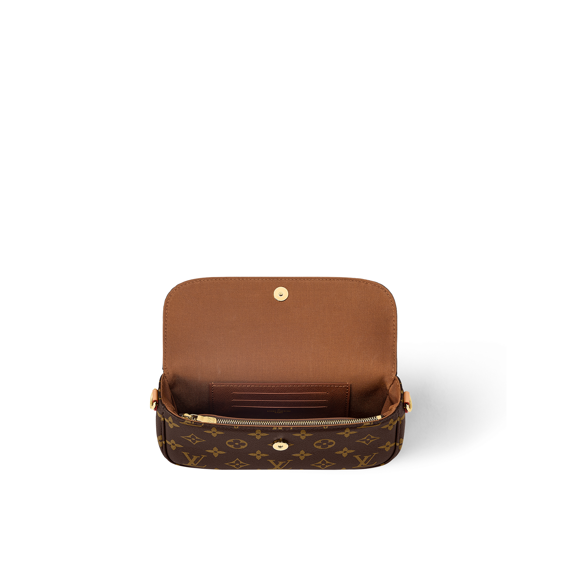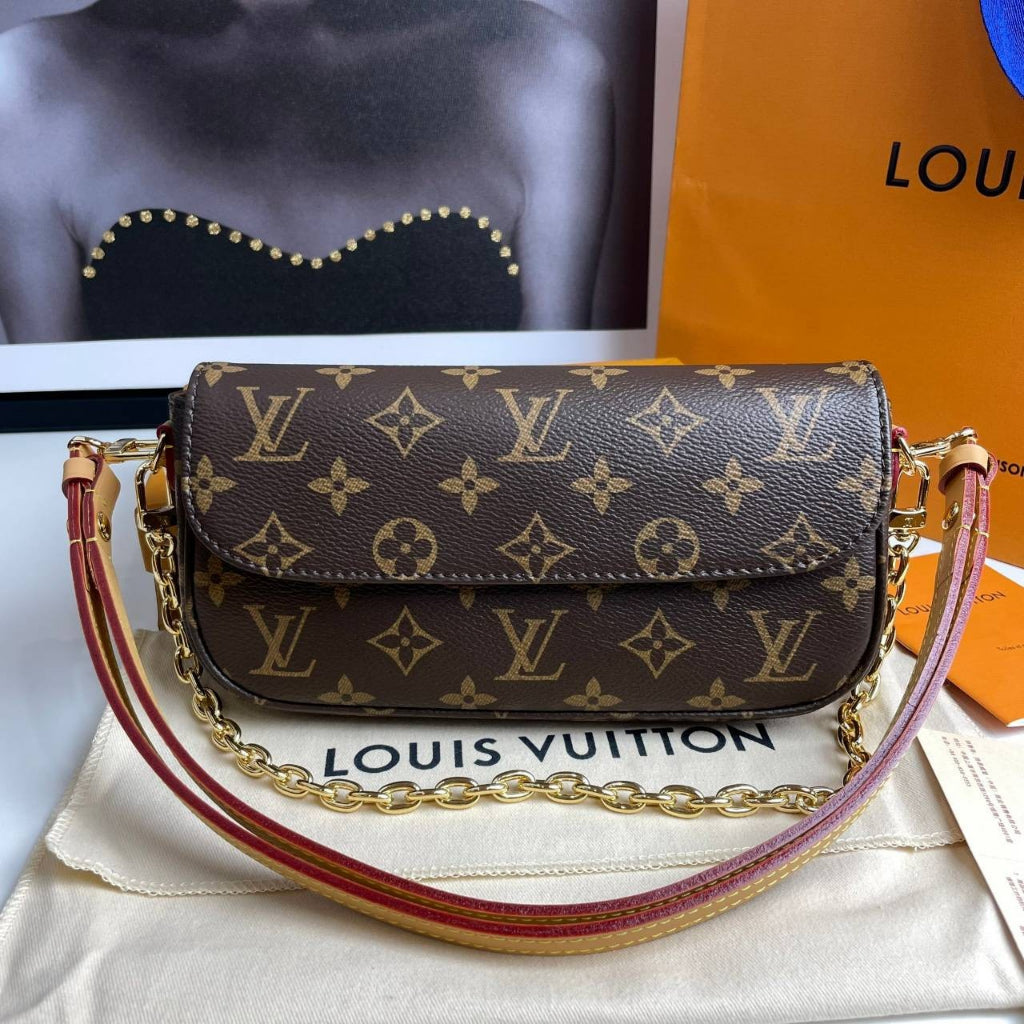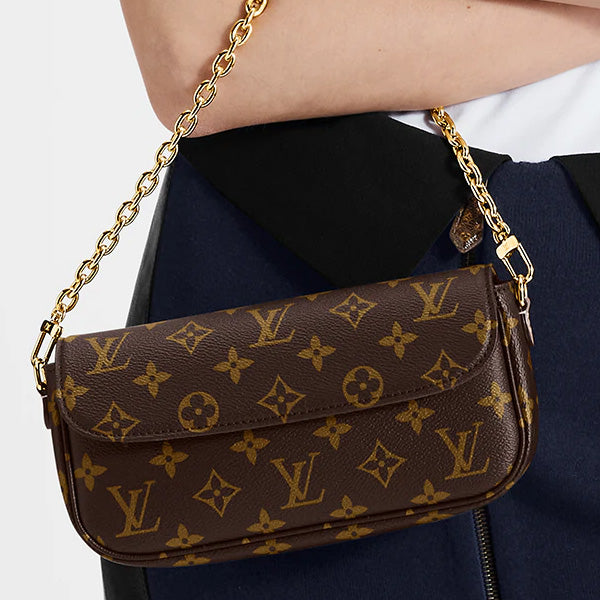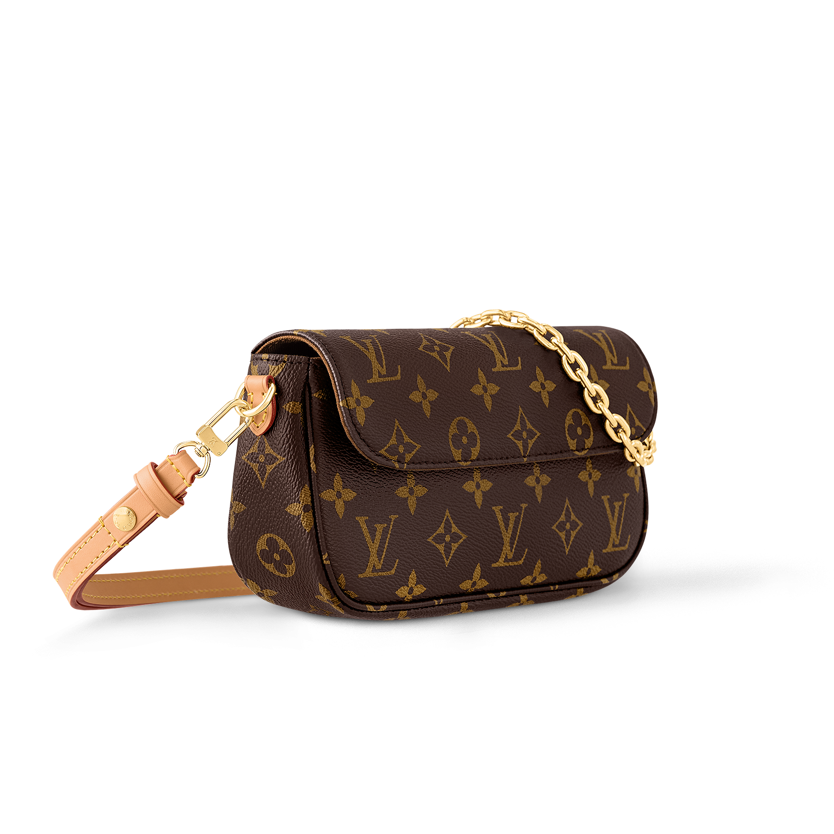 Inspired by the Sac Recoleta handbag from the 2000’s, the on-trend Wallet On Chain Ivy bag is fashioned from Monogram canvas. The removable gold-color chain allows short-shoulder carry while the adjustable and detachable strap, in natural leather, enables cross-body and long-shoulder carry. Three card slots and a zipped inside pocket make it perfect for everyday essentials.