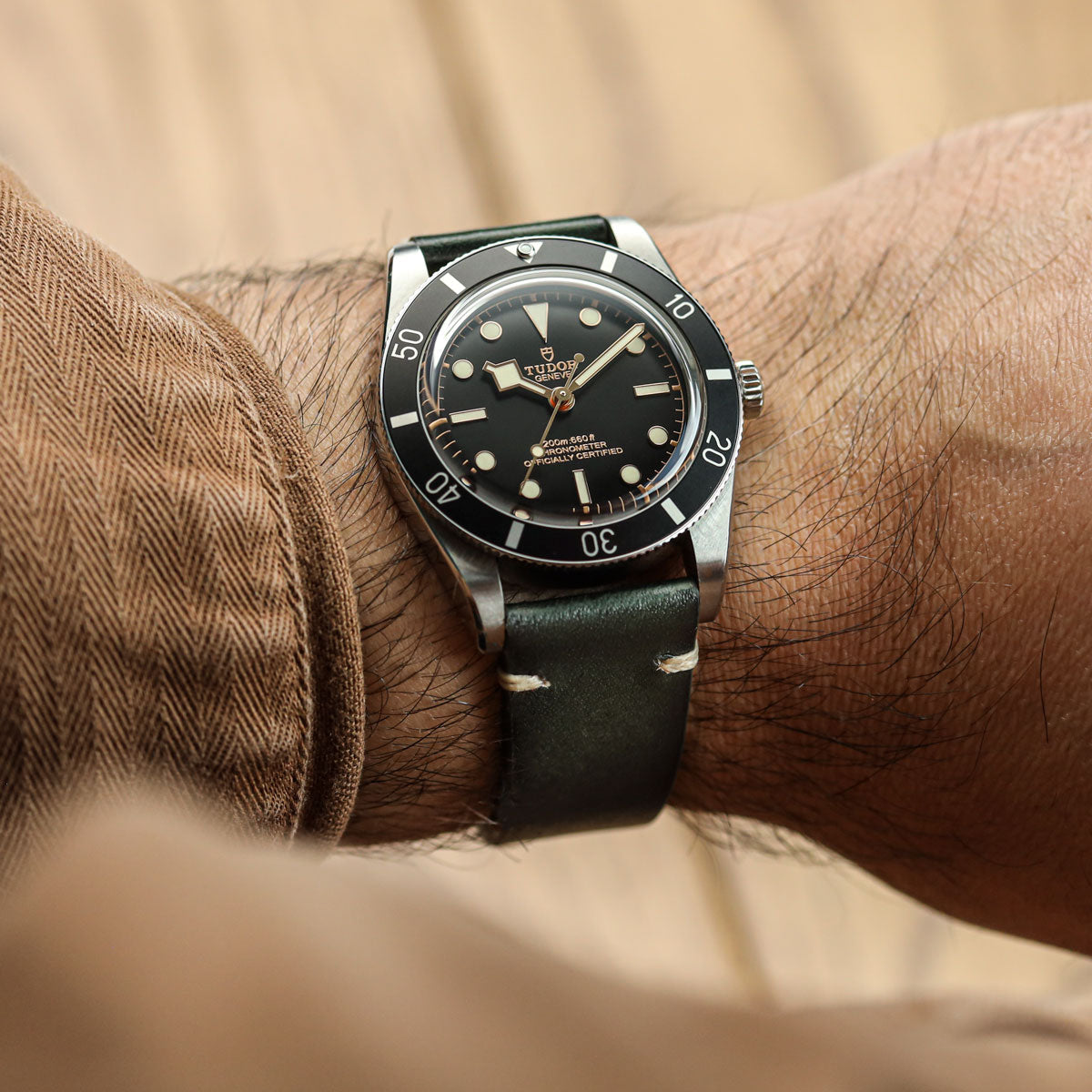 The fully vegetable-tanned OAK leather offers a natural texture and exceptional durability, while its ability to develop a patina ensures that your strap becomes even more beautiful with time. Finished with a protective seal and a soft waxed surface, the strap provides both comfort and longevity.