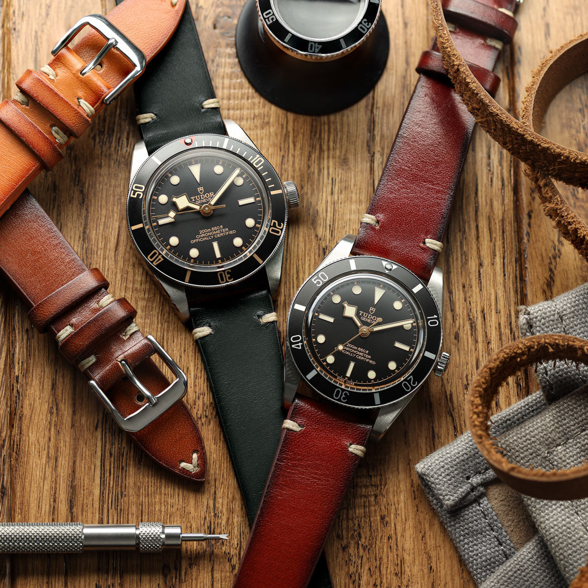 Our OAK leather straps are crafted from premium, fully vegetable-tanned leather—completely natural and renowned for its remarkable ability to shape and absorb colour. The meticulous hand-painting process involves applying layer upon layer of dye to create a stunning, one-of-a-kind two-tone effect. No two straps are ever exactly alike, making each piece truly unique.