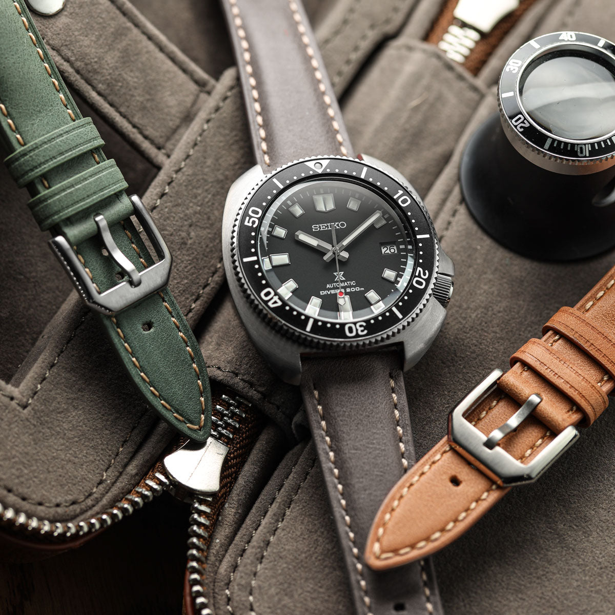As the second-highest grade of leather, top-grain leather has the outermost layer of hide removed. This process makes the leather thinner, more flexible, and easier to work with, which also results in a more accessible price point compared to full-grain leather. The distressed finish further enhances its vintage appeal, allowing the strap to develop even more character over time.
