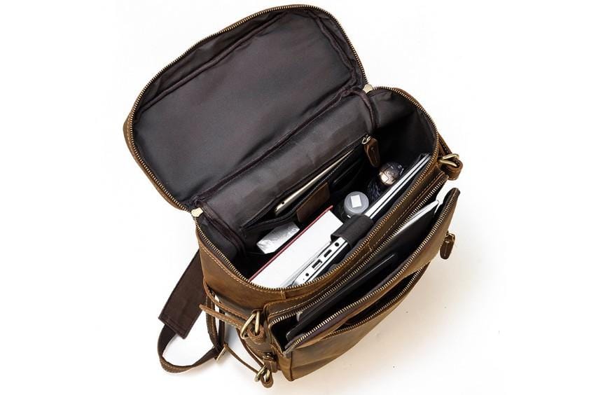 Features of Distressed Brown Genuine Leather Backpack Men's