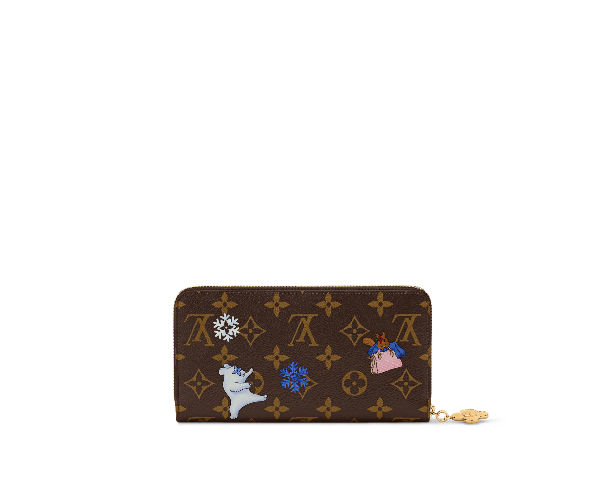 The House presents this playful edition of the iconic Zippy wallet as part of the Vivienne Winter Holiday collection. It is made from signature Monogram canvas, complete with a Snowy Pearl leather lining and is adorned with a Vivienne-shaped zipper pull. The compact design is fitted with multiple compartments to organize bills, coins and cards.